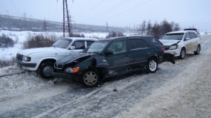 27 ноября 2013 года в 15 часов 20 минут в городе Магадане на улице Продольной 22 водитель автомобиля «Тойота Виста Ардео» не выбрал безопасную скорость, обеспечивающую постоянный контроль за движением транспортного средства, не учел состояние дорожного покрытия, выехал на сторону дороги, предназначенную для встречного движения, где произвел столкновение с автомобилями «ГАЗ-31029» и «Тойота Надиа».