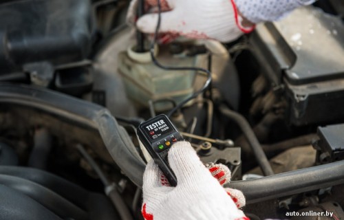 — Это тестер по замене тормозной жидкости, — ведущий специалист компании — поставщика технических автожидкостей Андрей Собольдемонстрирует маленький приборчик размером с отвертку. — Принцип работы простой — на несколько секунд опускаем его в бачок. Он измеряет уровень влаги, которая делает тормозную жидкость неэффективной.