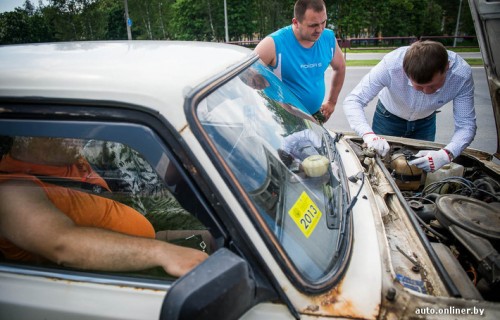 Следующим останавливают Ford Escort. Парень, немного смущаясь, открывает капот. Похоже, ему самому интересен результат проверки.
