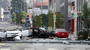 Заметив числившуюся в краже машину, полиция Лос-Анджелеса начала погоню. Вскоре они попали в дорожный затор и вынуждены были прекратить преследование. Вор продолжил ехать на скорости около 160 км/ч, однако не справился с управлением. В результате удара о фонарный столб электромобиль разорвало на две части. Передняя часть осталась на дороге и загорелась.