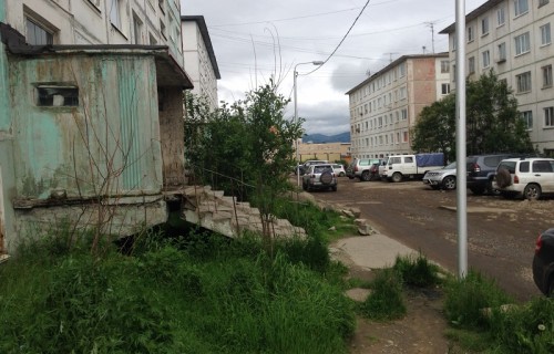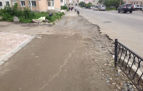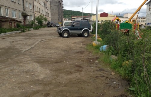 Жители дома № 12 по улице Дзержинского в Магадане уже несколько лет не могут беспрепятственно добраться до подъездов: весь двор в огромных ухабах, а насыпной тротуар не удобен не только для пешеходов, но и для таксистов, которые отказываются даже въезжать в злополучный двор. Совсем недавно возле 12-го дома для малышей располагались качели, но минувшей зимой их срезали, и двор окончательно превратился в антиблагоустроенную территорию.