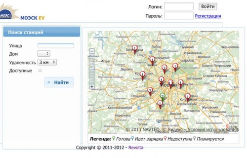В то время, врочем как и сейчас, у нас официально продавался только один электромобиль, если конечно эту инвалидку можно так назвать — i-Miev, стоимостью 1,8 миллиона рублей! Ходят слухи, будто бы их даже покупали, но я сильно сомневаюсь, что на свои.. 🙂 Создавались станции электрическим монополистом МОЭСК и были переданы в управление компании Револьта. Позднее, точно не знаю в какой момент, МОЭСК забрал взад почти все станции и у Револьты осталось только 5, одна из которых «быстрая». Для использования станций необходимо зарегистрироваться на сайте оператора и получить карту клиента. Что мы заблаговременно и сделали