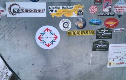 На 731 км трассы «Колыма» стоит заправка и кафе «Куба», пожалуй, самое популярное здесь. Оно стало знаменитым на весь мир благодаря фильму Дискавери и Первого канала «Трасса Колыма: Добраться вопреки». Оставили на заправке и свой знак на память. Здесь мы пожалели, что наклеек было так мало.