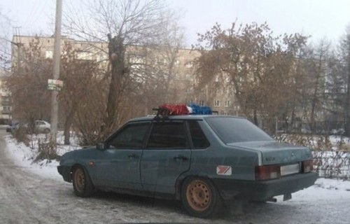 Водители украшают свои автомобили мишурой, придавая им сходство с полицейскими экипажами. Наверное стоять в предновогодних пробках с такой праздничной «мигалкой» -одно удовольствие. Можно себе представить, как коллеги по полосе загадочно улыбаются, заговорчески подмигивают и удовлетворенно кивают, мол, какой молодец: двусмысленно украсил машину.