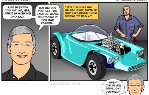 Комикс: Apple работает над автомобилем по одной причине: это единственный способ прекратить отток её специалистов в Tesla. Джонни Айва никогда не видели более счастливым. (Re/code)