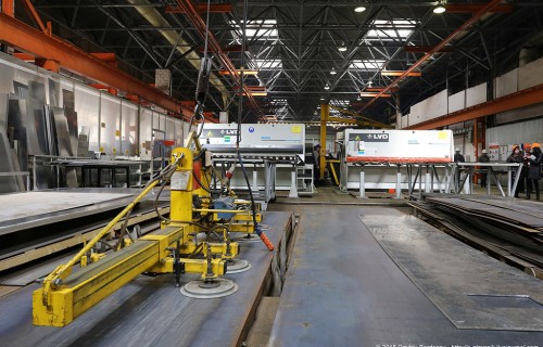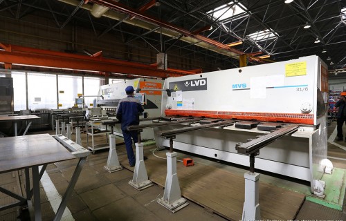 Начнем с заготовительного цеха. Здесь производится подгонка металлических листов под необходимый размер. Для изготовления в основном используется нержавеющая сталь российского производства и импортный алюминий. К сожалению, наши предприятия не выпускают алюминивые листы нужного качества.