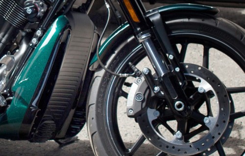 Узнать V-Rod проще всего по большому радиатору в передней части мотоцикла. Ни у Sportster, ни у Dyna, ни у Softail радиатора нет. Их двигатели — «воздушники», они охлаждаются потоком набегающего воздуха. А у V-Rod двигатель с жидкостным охлаждением. Также, как и у вашего автомобиля! На это усложнение конструкции инженерам пришлось пойти ради увеличения мощности. Такой мотор выдает около 120 л.с., был бы он при такой отдаче «воздушном», он бы постоянно перегревался.