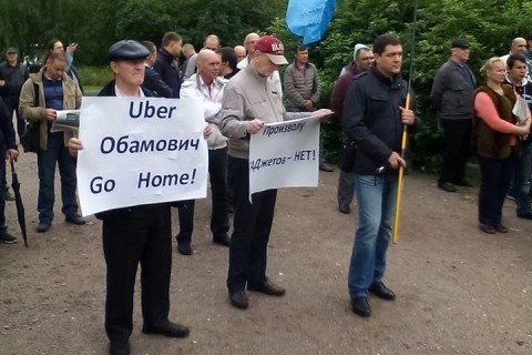 Сотрудники таксопарков приняли участие в мероприятии с плакатами «Произволу ГАДжетов — нет!», а также «Uber Обамович Go Home». Некоторые из них приехали на автомобилях с баннерами Gett и «Яндекс.Такси».