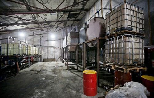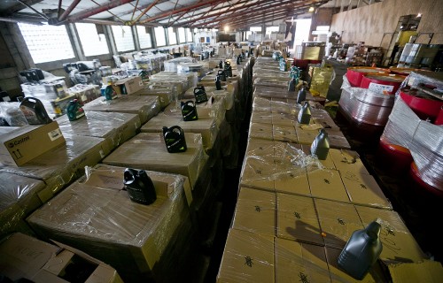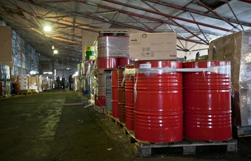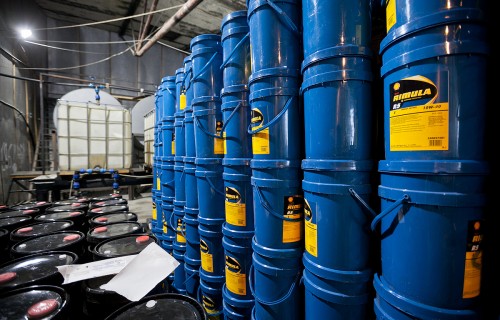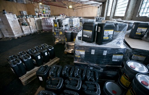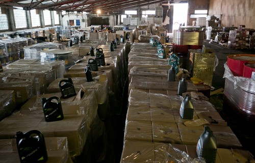 3. Внутри здания целые ряды с коробками, бочками, канистрами с моторным маслом различных марок и брендов. И все это подделка. Кстати, сами канистры провозили промышленными масштабами из Белоруссии.