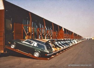 Был в американской автомобильной истории такой автомобильчик — Шевроле Вега, производился он корпорацией Дженерал Моторс с 1971 по 1977 год. Сама машинка была так себе и ничем особо примечательным не выделялась, но вот доставляли ее с завода к дилерским центрам очень интересным способом. Машины перевозили в железнодорожных вагонах с очень необычной схемой загрузки — машины помещали в них вертикально, капотом вниз.