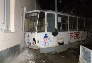 Вчера ночью 22:30 провожал девушку домой, ничего не предвещало беды. На обратном пути оглянулся и увидел трамвай, который едет не естественно, не по рельсам, но очень уверено и прямо на меня, спокойно идущего по тротуару.