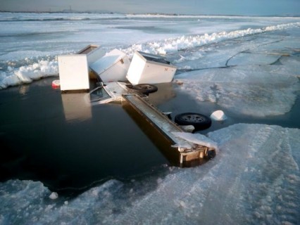 В связи с потеплением и уменьшением толщины льда на ледовой переправе через реку Яна образовались трещины и промоины, наблюдается разрушение льда у съездов, существует угроза провала автотранспортных средств под лед.