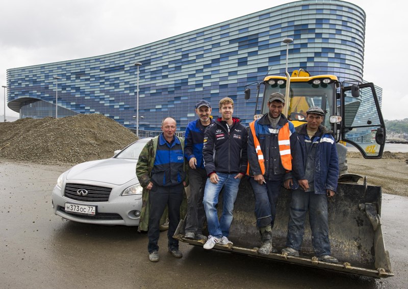 Палец осваивает новую технику сочинской Формулы-1 в компании бригады механиков