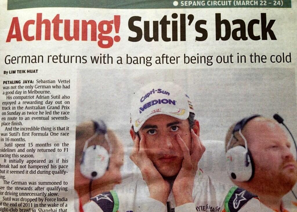 Как вам Сутиль? Он и раньше грязновато ездил и, по-моему, перерыв не сильно изменил. Ахтунг, короче)