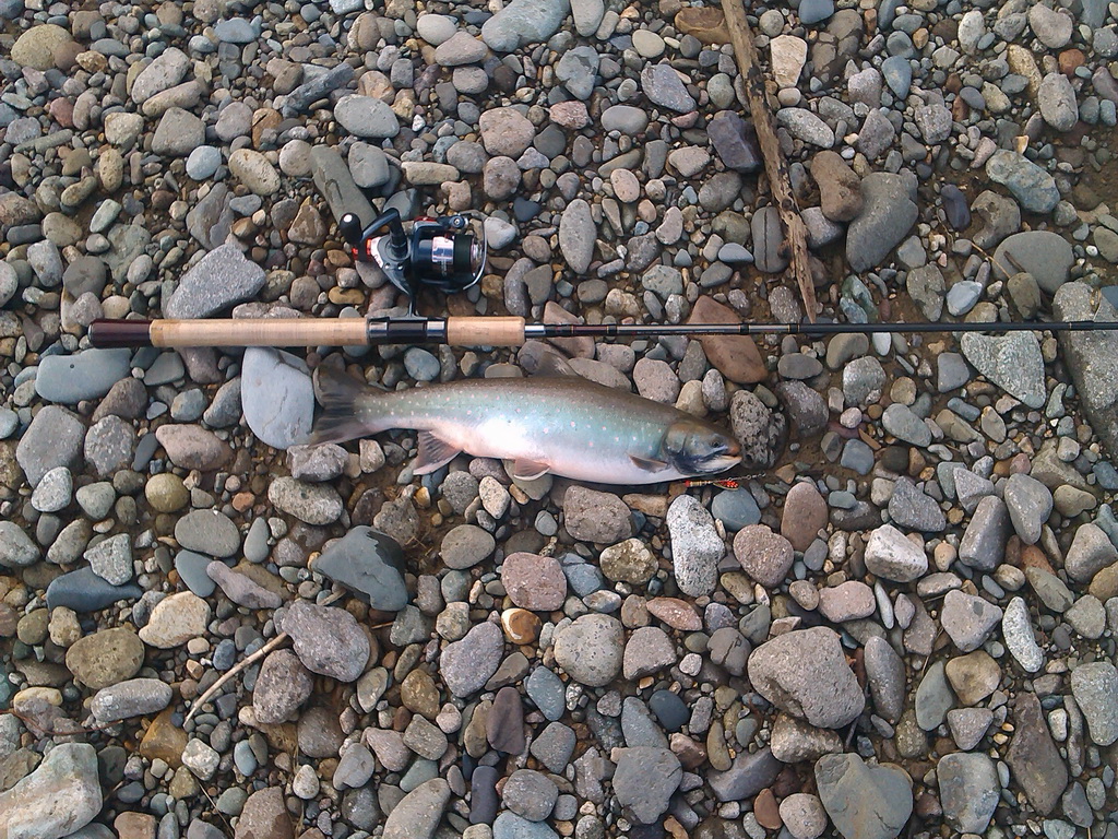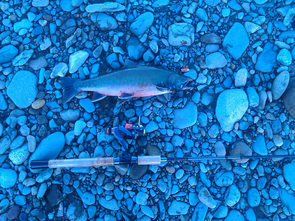 Сегодня с товарищем прокатились по сплавнинской, прошлись вверх от 12 км. до "Японского" плесы есть рыбы нет, но одно местечко нашли, у товарища с первого заброса попалась мальма. Начали ловить. Я после третьей выловленной рыбины, зацепившись за камень оторвал груз, отложил удочку, взял спиннинг и дело пошло дальше. Спин УЛ тест от 3 до 15 гр., шнур Bullit Braid Super PE 0,12, блесна "комета" белый лепесток с синими точками. Всего поймали по полтора десятка. На легкий спин очень понравилось ловить, ощущения совсем другие. Так же "подержал" две кетины, одна почти сразу сошла, другая чуть чуть побрыкалась и тоже сошла. Но было бы интересно выловить крупную рыбу на легкую снасть. В общем потихоньку осваиваю спиннинговую снасть.