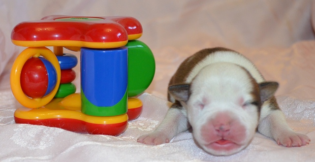 24 января этого года были выкинуты крошечные щенки. Мы одну деваху оставили себе (остальных раздали).