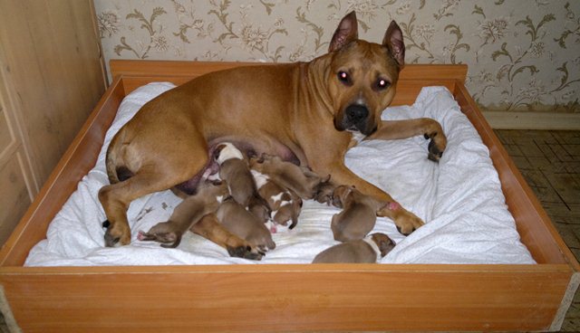 Родились щенки американского стаффтерьера (вязка плановая, с документами РКФ) мальчики и девочки, рыжие и рыже-белые, обалденно нарядные))