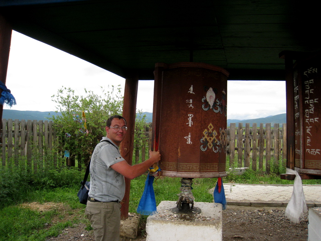 Нажмите для просмотра прикрепленного файла Мандала – это такой круглый барабан, в него наложены бумашки с молтивой.. Очень удобная религия – прокрутил большой барабан по часовой стрелке один раз вокруг своей оси – за тебя прочиталось 500000 молитв.. , прокрутил еще раз – и еще прочиталось – очень удобная религия. Ни тебе всенощной, ни постов.. В бурятской транскрипции буддизма – разрешено употреблять мясо. В общем, нам понравилось, все с удовольствием крутили манадалы.. %)