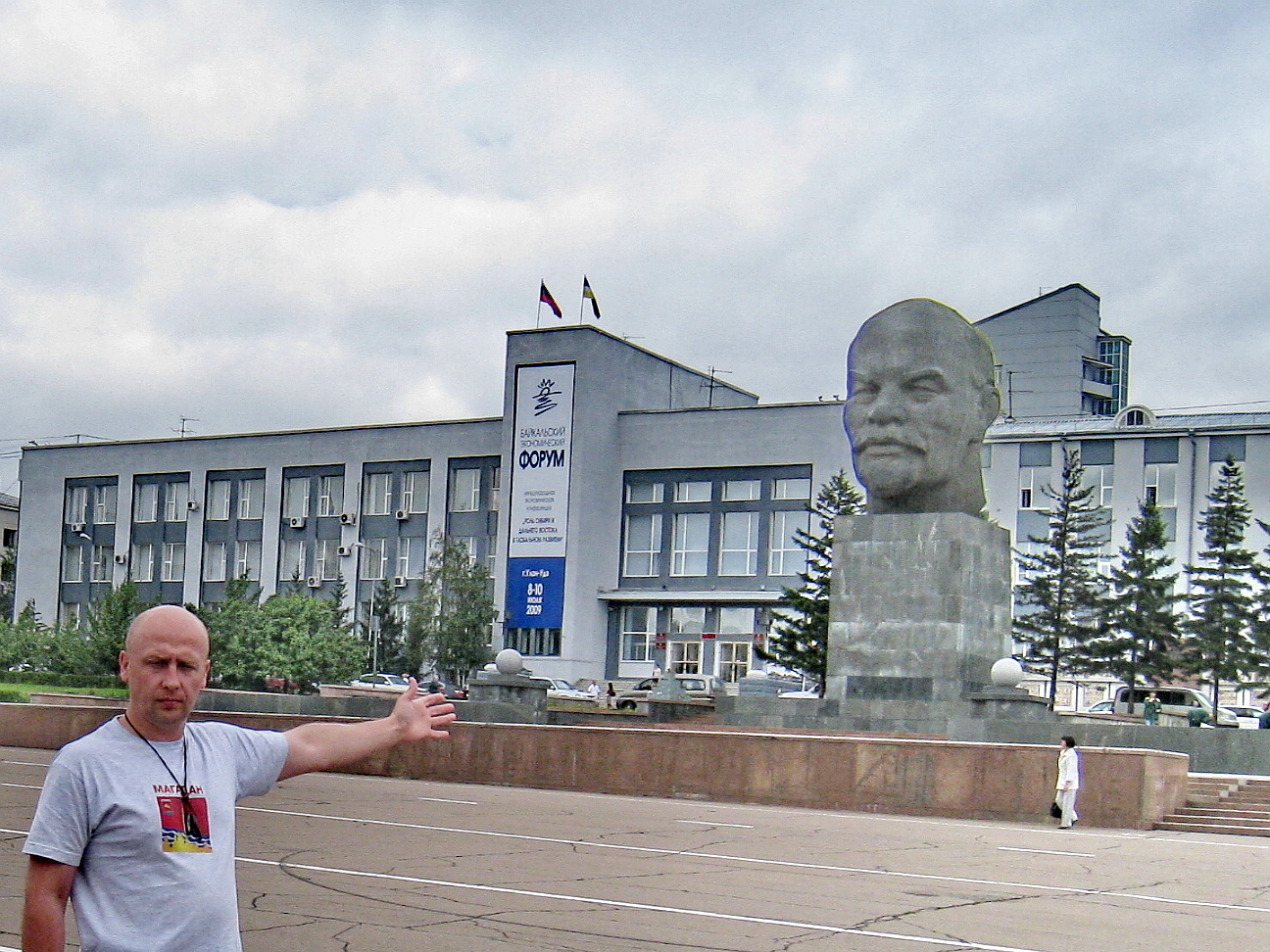 На следующее утро проводили Сашу с Викой – ему в тот день предстоял небольшой перегон до Иркутска.. Ну а мы поехали скупиться для заброски на нашу базу отдыха. Я докупил немного рыболовных снастей, потом попробовал поискать стекло заместо разбитого –так к сожалению ничего не нашел. После обеда – решили погулять по Улан-Удэ. Доехали до центра – и пошли на пешеходный Арбат.