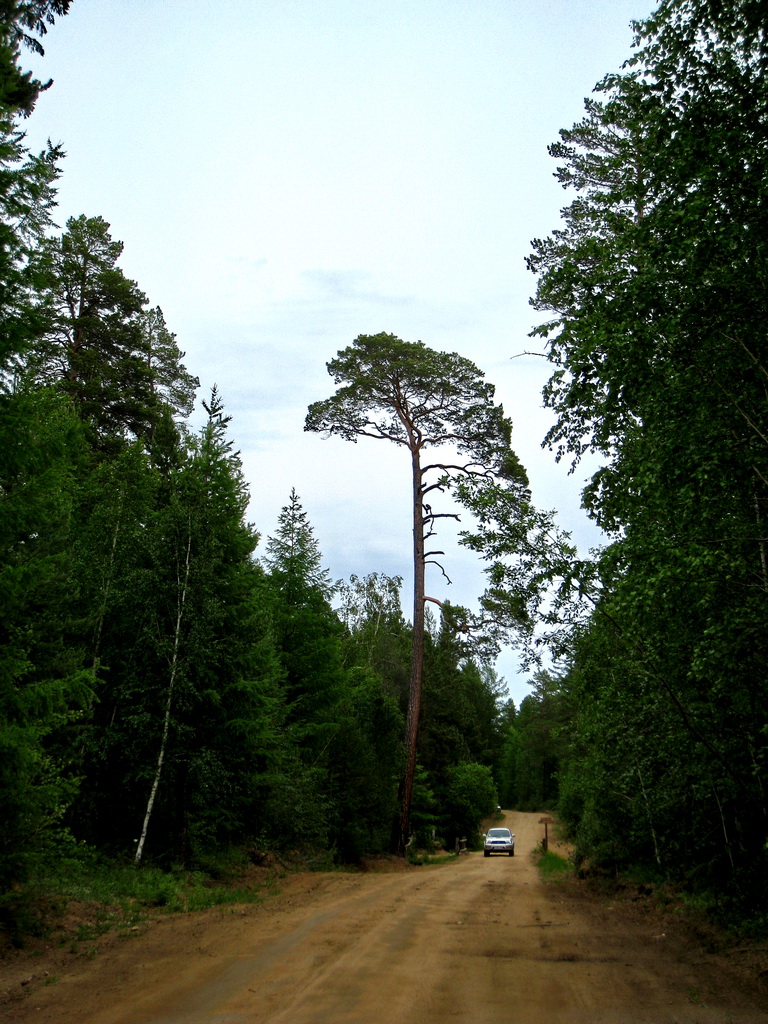 Увидели большое дерево- сосну наверное. Стали появляться встречные