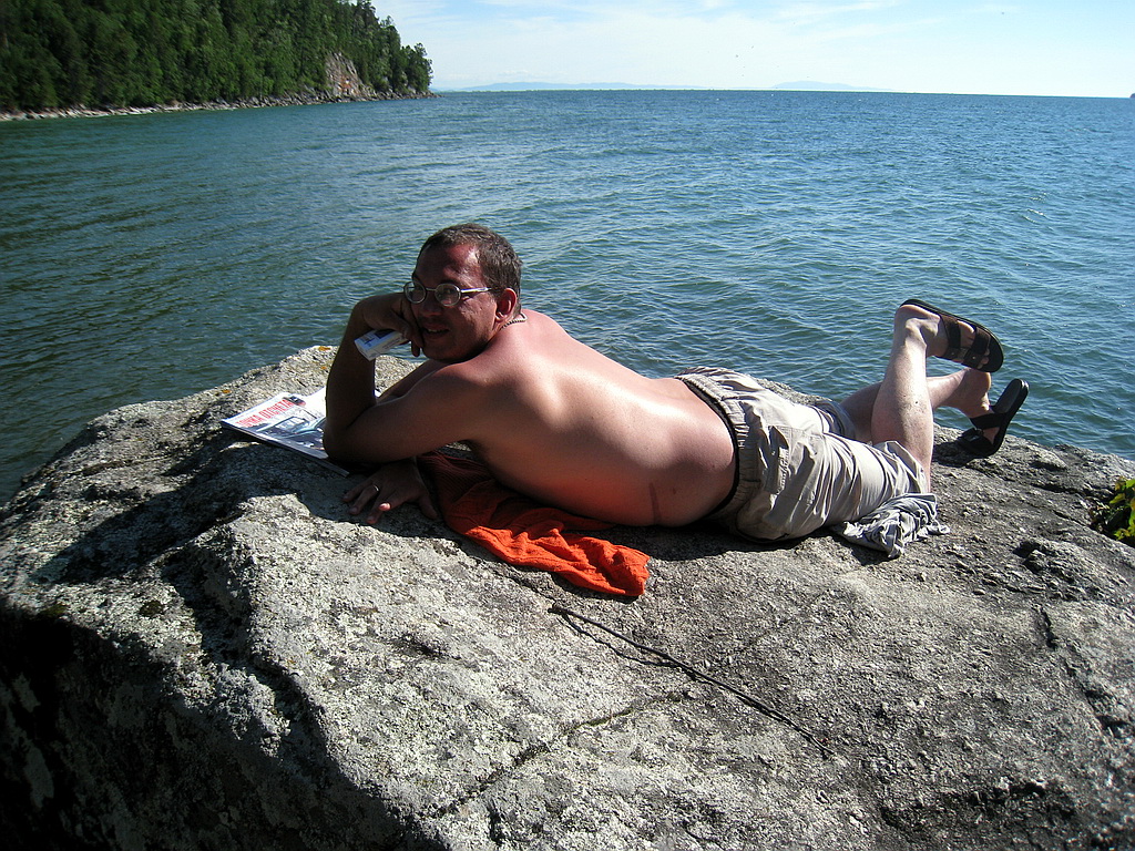 Прошли небольшой перевал, доехали до «Татаурова» - большая деревня… Интересно – после Татаурово – дороги две – старая и новая – идут параллельным курсом километров 30. Старая – грунтовка, новая – асфальт волнами – очень неприятный.. Потом, ближе к Гремячинску – изумительный новый асфальт – скорость возросла на порядки. Очень много по трассе машин с иркутскими номерами – я так понимаю – на своей стороне Байкала – им уже не интересно. Какая то стайка иркутян – все время нас обгоняла и останавливалась на каждом отвороте направо - я потом понял – что они искали свой дом отдыха.