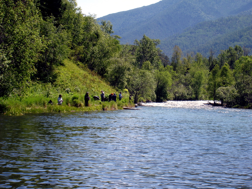 Встали на берегу, и по случаю прибытия в конечную точку путешествия (дальше – только на моторной лодке) распечатали ящик пива. Стукнулись жестянками – с приездом %)