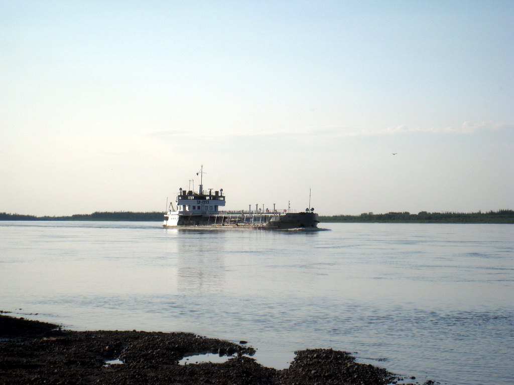 А перед самым въездом в город – я увидел оленя. Но как он прыгал в лес – это надо было видеть. Въехали в город (или поселок – честно говоря – деревня деревней).. Заблудились в поисках переправы – потом пораспрошали – нашли переправу.. Подъехали – и решили пообедать сначала – а потом уже переправляться. Возле переправы – находиться позная. Зашли – накушались поз. Поставили машину в очередь на переправу и начали ждать.