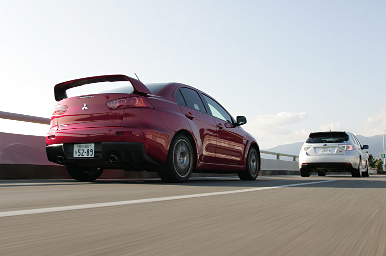 Тестируют японцы: Subaru Impreza WRX STI против Mitsubishi Lancer Evolution X