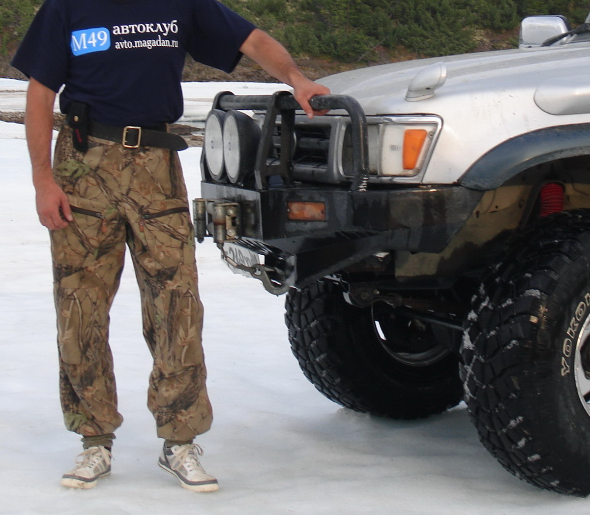 Простоял три часа, пока Радуга не подъехал, мало того, что мы знакомы, так мы еще и с М49, а я был в футболке с логотипом, наверно надо было камуфлированную куртку скинуть и в футболке стоять