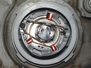 Эту проблему также можно решить несколькими способами. Первый состоит в том, чтобы сделать в корпусе фары новые углубления для усиков, позволяющие фиксировать лампочку в правильном положении. Этот способ весьма трудоемок и требует специального инструмента и оборудования, например бор-машины. Но зато он не требует переделки самой лампочки и позволяет легко менять ее в дальнейшем.