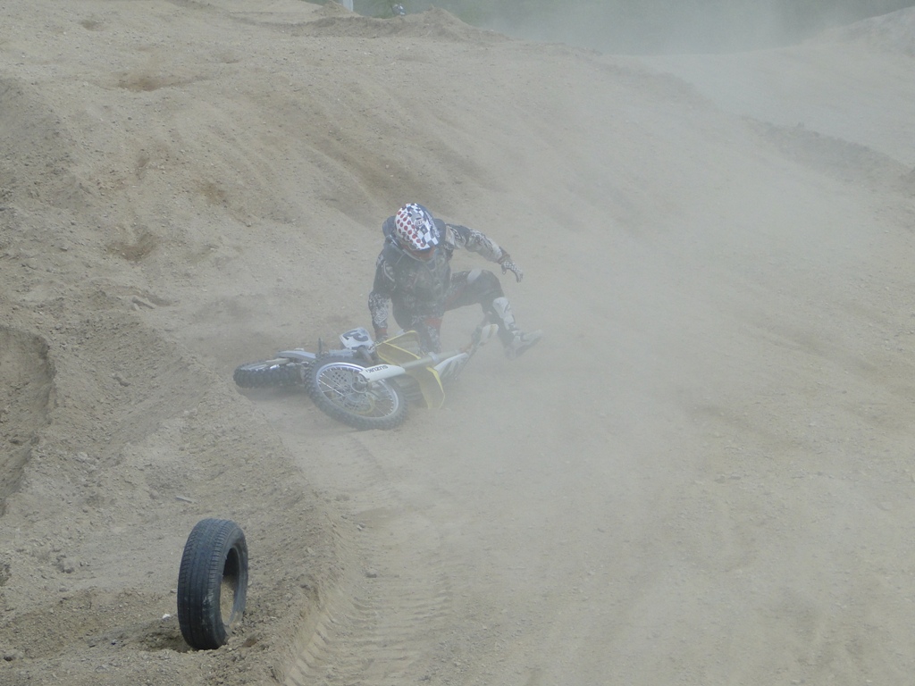 Гонщега повело колесо в повороте по насыпному борту. Падение, досадно