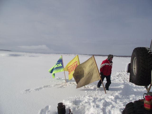 Снега очень много, снег тяжолый. Калёса идут по целине плохо, Гусянки себя зарекомендовали очень хорошо, ( в этом году они были расширены на 20см) приходилось топтать колею пыжиком и возвращаться за прицепом. Все лиманы ещё стоят, лёд толстый но наледь уже даёт о себе знать.