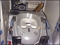 Современный туалет обошелся NASA в $23,4 млн. Это комнатка 75 см в ширину. Астронавты прикрепляют себя к специальной перекладине на уровне бедер и пользуются шлангами, из которых отходы вытягиваются воздухом и поступают в резервуары. Твердые мгновенно замораживаются и потом возвращаются на Землю для анализа. А жидкие просто следуют за борт. Как сказал один из астронавтов: "Нет зрелища прекраснее, чем свалка мочи на закате".