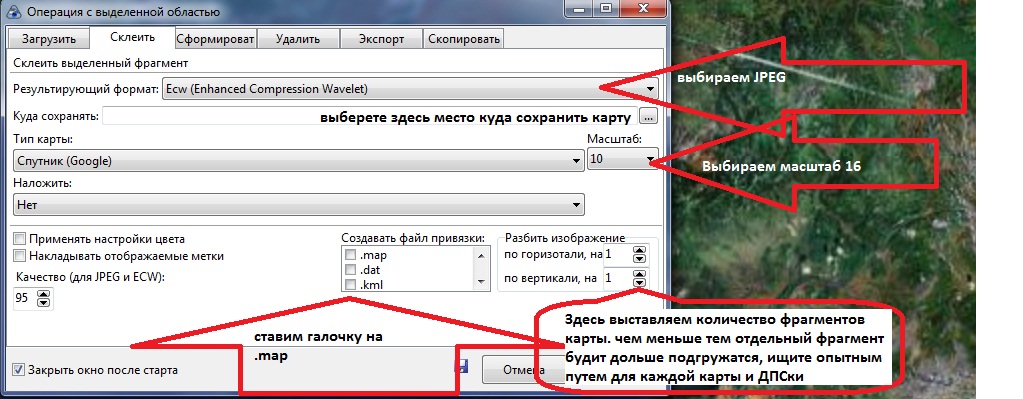 4. всплывает такое окошко:Нажмите для просмотра прикрепленного файла. Здесь все просто, если нам надо загрузить нужный участок из инета то выббираем масштаб (самый оптимальный 16) и нажимаем загрузить. Прога загружает отсутствующие фотографии нужного масштаба.