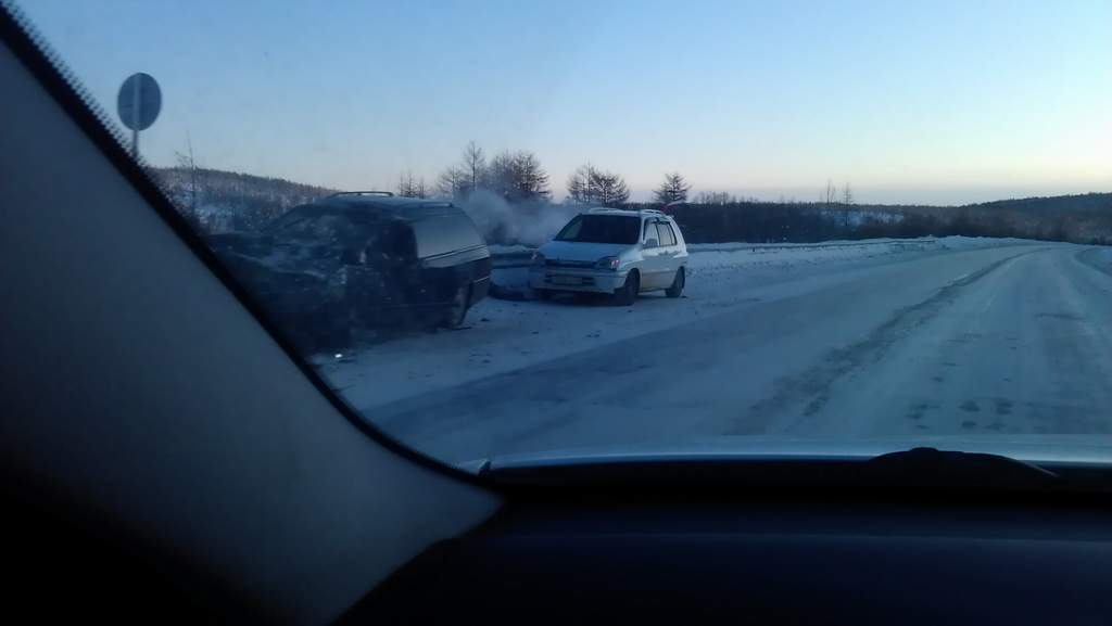 Только с Сокола - перед Уптаром в кювете 100-й Крузак а на дорогу вытащили Ниссан Датсун у того масло с движка всё на снегу.