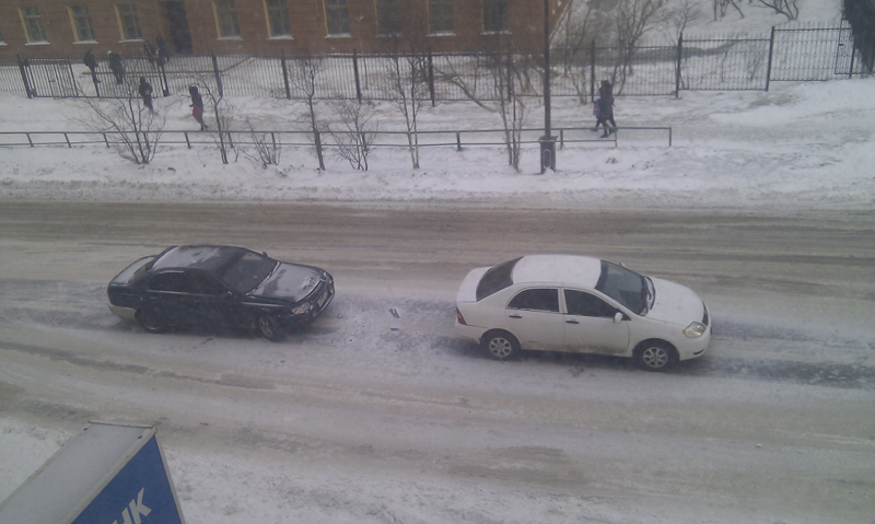 На Якутской, возле парковки гор.прокуратуры, притерлись два кадра... Повреждения не значительные...