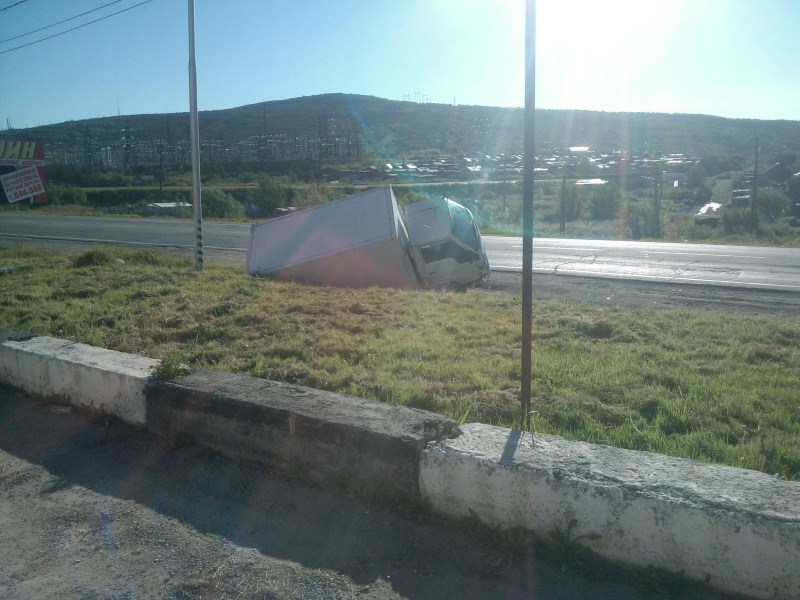 Камрюха на обочине(обочина складов) правая часть морды сильно смята, правое переднее колесо вывернуто довольно не хило. Видел это происшествие в 21.15