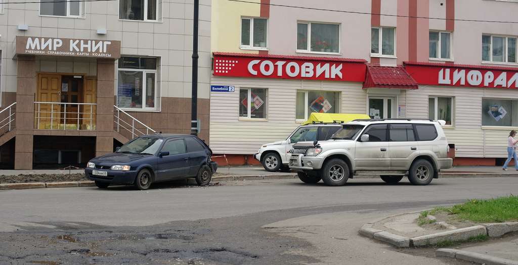 ДТП произошло прямо на моих глазах, но я так и не понял почему оно произошло. Легковушка просто была припаркована, в ней даже водителя не было, а прадик с полного хода в неё въехал, даже не пытался оттормаживаться, ощущение такое что он вообще не видел припаркованный автомобиль, хотя как это возможно, непойму. После удара эскудик, который пыталься припарковаться, решил что безопаснее будет оставить авто подальше от кармашка и заехал прямо на тротуар от греха подальше.