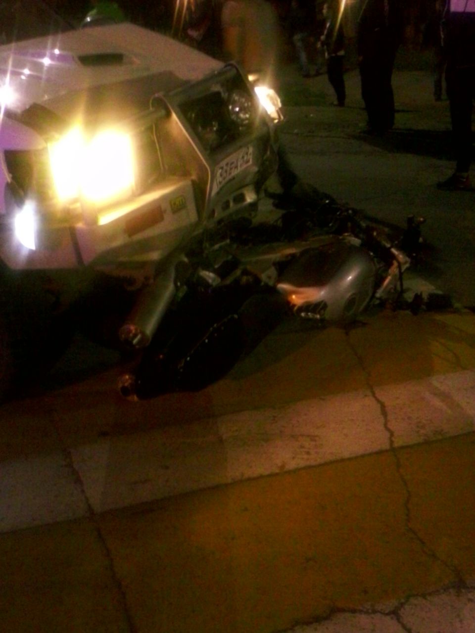 Мотоциклист и хайс. Это было по основной трассе перед нулем.