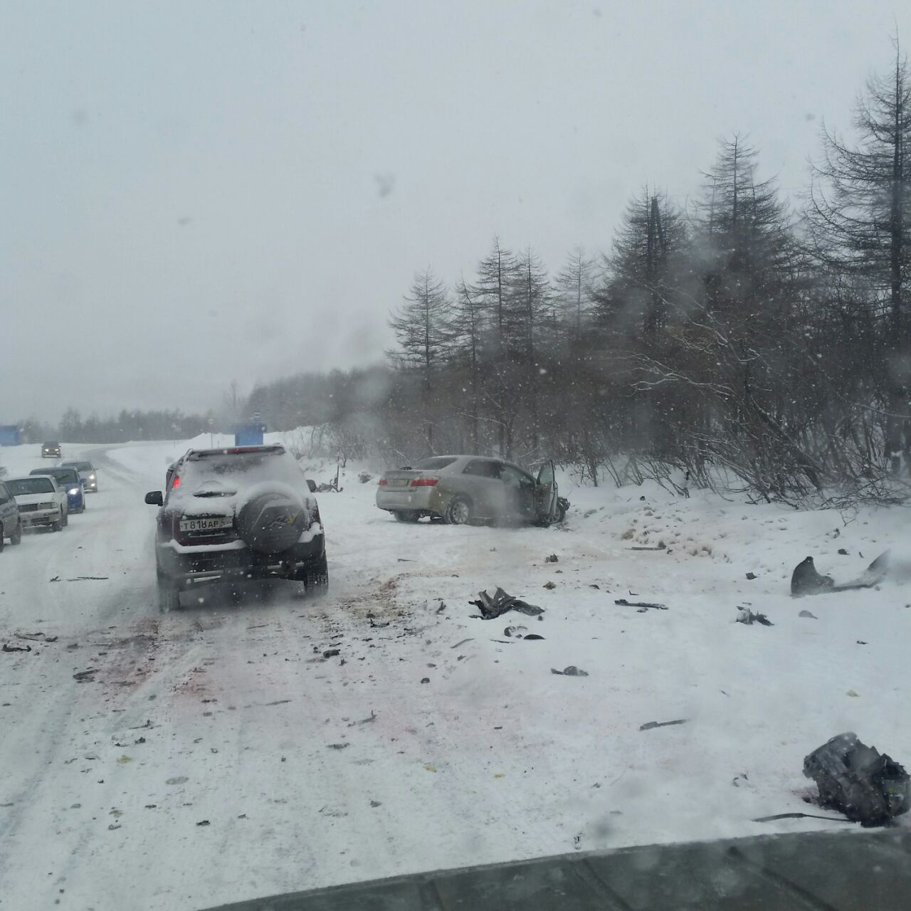 На Колымском шоссе чуть ниже Стамбула серенький дайхатсу-териос-кид мощно догнал серый витц в новом кузове (или что-то похожее). Обе машины серьезно повреждены.