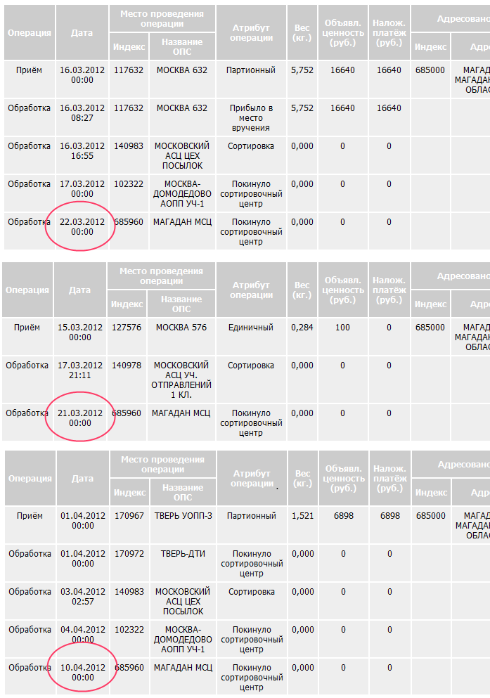Ну суть не в том , я решил позвонить на горячую линию , просто достало . Говорю оператору что хочу оставить притензию , ну обьяснил все как есть , что пришло извещение с одним графиком , а работают они по другому , она спросила номер отправления я ей его продиктовал с извещения , она посмотрела по компу и сообщила что это отправление еще не прибыло в Магадан
