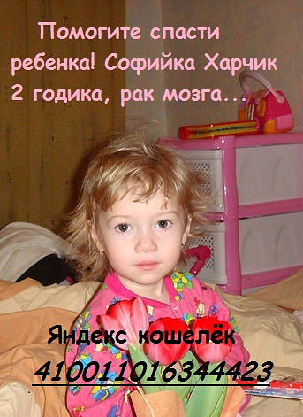 У меня в Украине есть подруга детства, в начале июня у ее крестницы обнаружили опухоль головного мозга. Родители продали квартиру собрали денег по друзьям/родственникам и уехали в Израиль на операцию. Операция прошла успешно, но провели анализ и оказалось что у Софии рак. Девочке всего 2 годика...