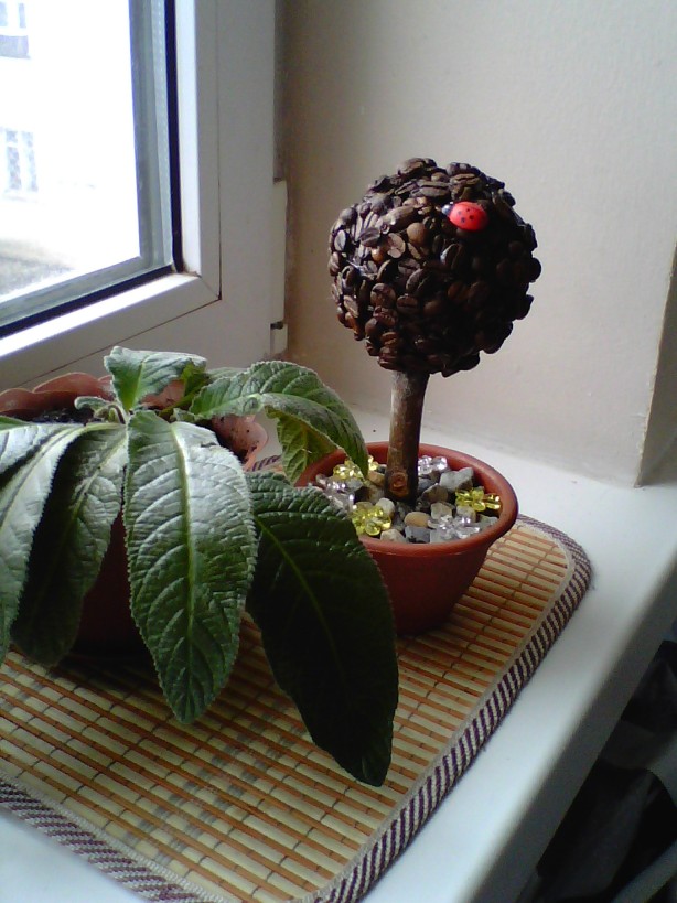 Сделала кофейное дерево. В кухне приятный запах обжаренного кофе... Мммм....