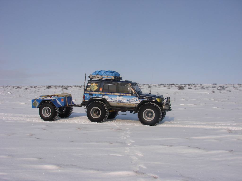 Вопрос на чём, пока не очень актуален, ибо сначала надо понять возможность, хотелось бы пройти маршрут максимум на 35 колесах лучше на 33, машины хотелось бы использовать с бензиновым двигателем. Марку машин пока не обсуждаем, будет решаться исходя из тех. условий.