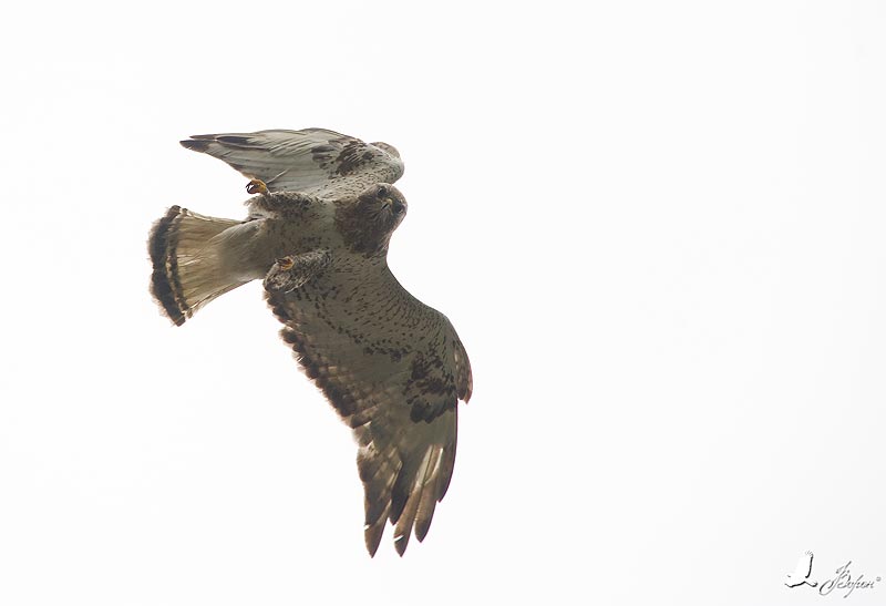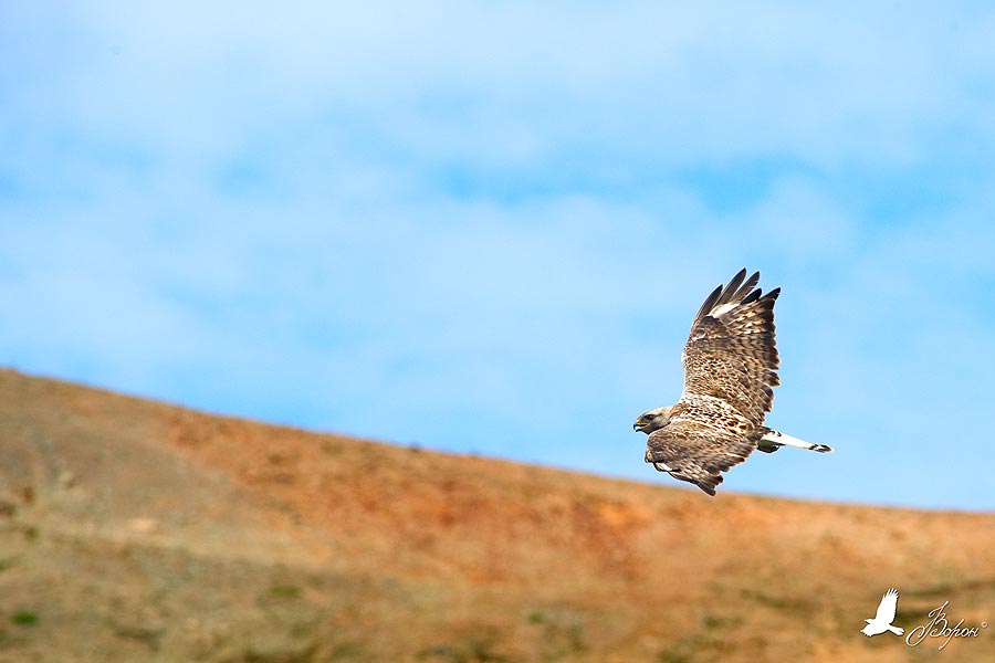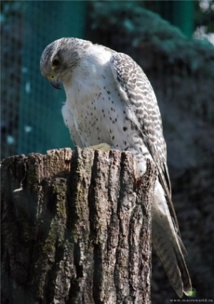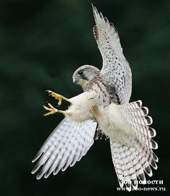 Серый такой, в два раза меньше ворона, с криком упал на летящего ворона с верху, с приличной скоростью.