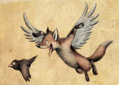 Птиса еще долго на него пикировала и орала по своему, ворон сел на землю и пошел пешком по кустам.