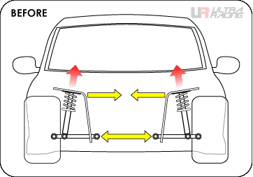 С верхними и нижними распорками геометрия кузова изменяется незначительно, и, как следствие, улучшается контроль над автомобилем при прохождении поворотов.
