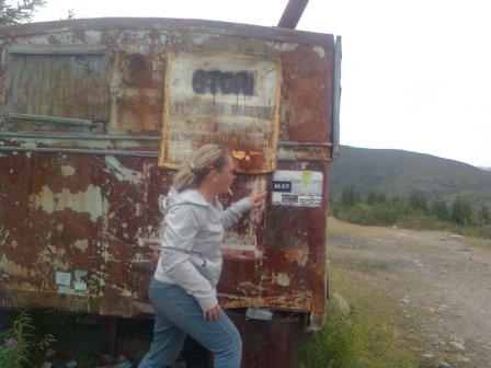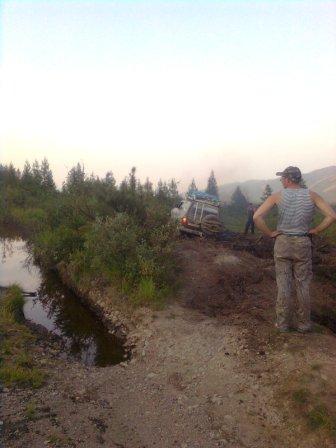 Вначале хотели доехать (ну мы ж на танке....ёпт), а там болотина жижистая, а время было жаль тратить, т.к. в одну машину. Решили последовать совету местных, вылезли из неё и пошли ногами. (да и залебедиться на том участке незачто). А засаживается машина сразу, как только в неё попадаешь. Поэтому надо сразу принимать решение, а то машина блин быстро начинает тонуть...